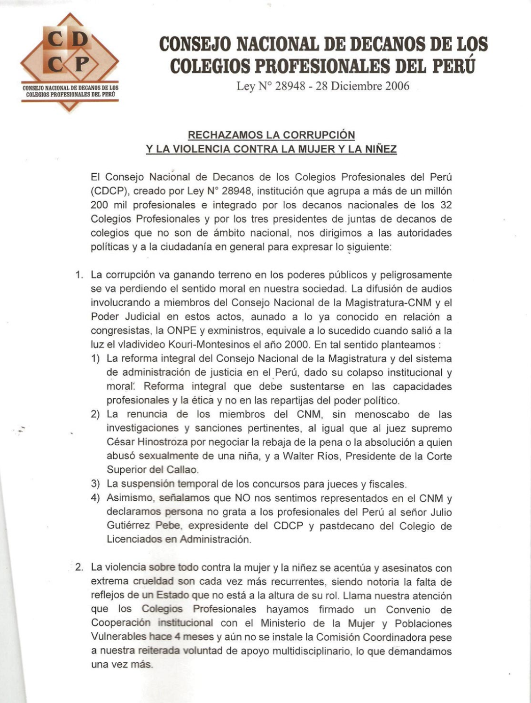 19/07/2018 Acción Conjunta de los Colegios Profesionales del Perú NoticiasPor Nectario Vegajulio 19, 2018