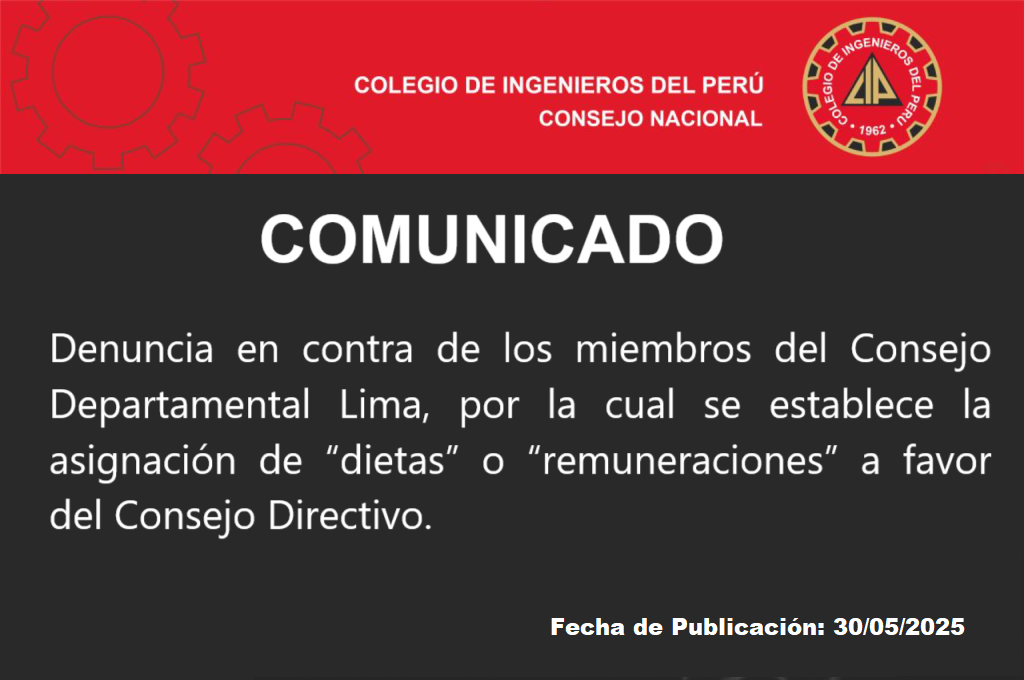 09/09/2025 El Colegio de Ingenieros del Perú – Consejo Nacional expresa su solidaridad con todas las personas afectadas por el lamentable accidente ocurrido el 5 de septiembre de 2025 en la Variante de Pasamayo y en concordancia con su compromiso con la seguridad vial, hace un llamado a la unidad institucional y ciudadana para enfrentar los desafíos que esta situación impone.