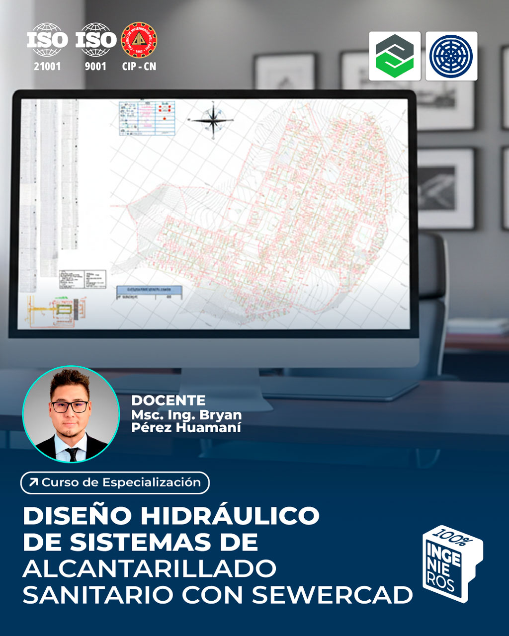Este curso está dirigido a ingenieros y estudiantes de últimos ciclos que desean diseñar y analizar sistemas de agua potable y alcantarillado sanitario, aplicando normativa vigente y criterios hidráulicos de forma práctica, así como evaluar demandas, caudales y escenarios mediante herramientas como MathCAD Prime y SewerCAD.