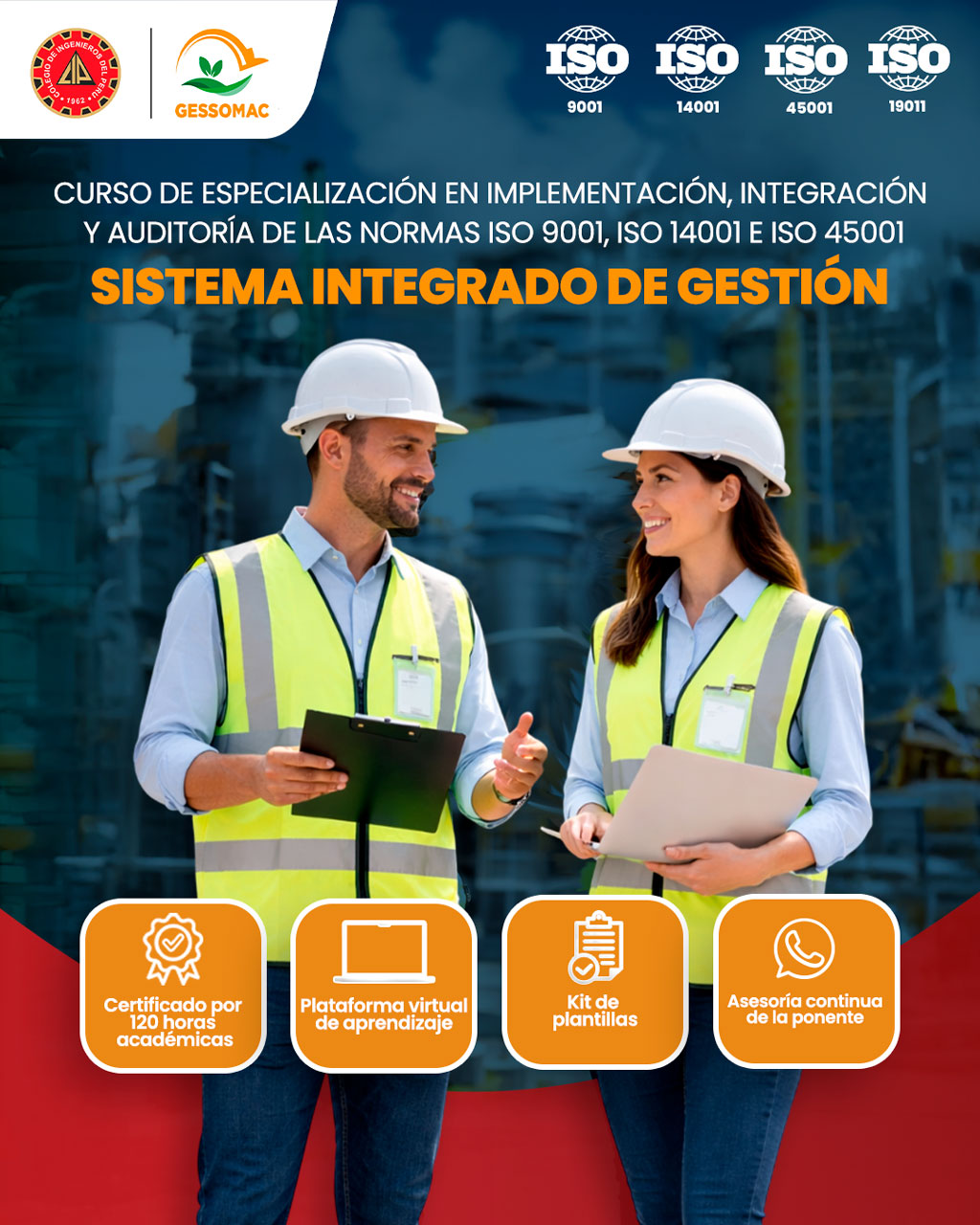 Domina los estándares internacionales más demandados por las empresas a nivel global. Aprende a diseñar, implementar y auditar un Sistema Integrado de Gestión (SIG) bajo las normas ISO 9001:2015, ISO 45001:2018 e ISO 14001:2015 para elevar la competitividad y eficiencia organizacional.