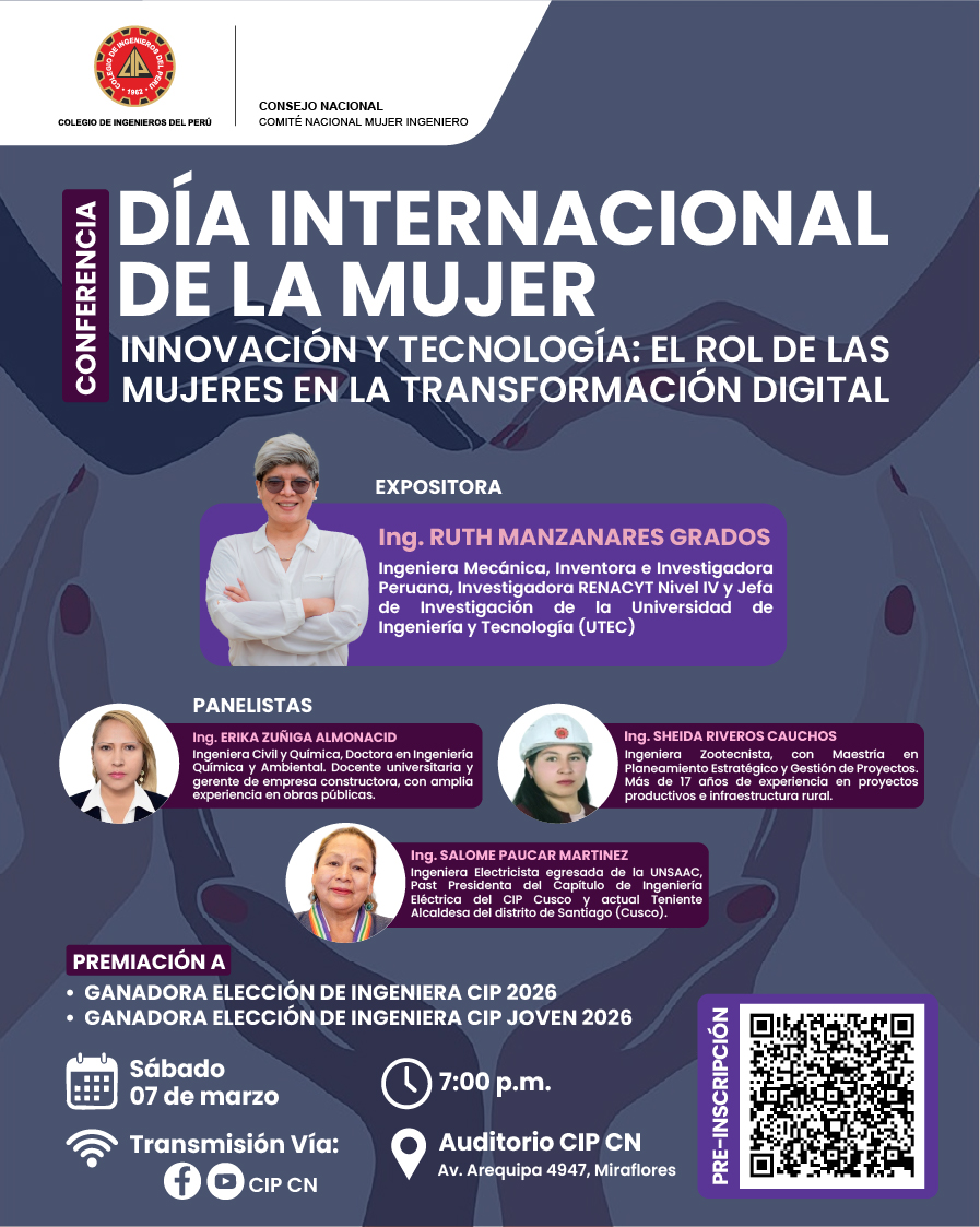DÍA INTERNACIONAL DE LA MUJER Y PREMIACIÓN DE INGENIERÍA CIP E INGENIERÍA JOVEN CIP 2026