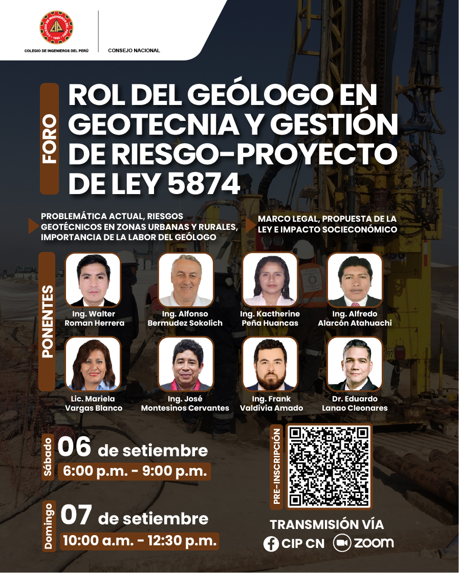 FORO: ROL DEL GEÓLOGO EN GEOTECNIA Y GESTIÓN DE RIESGO-PROYECTO DE LEY 5874