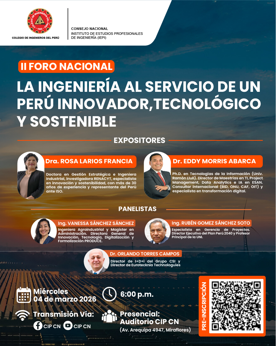 II Foro Nacional: LA INGENIERÍA AL SERVICIO DE UN PERÚ INNOVADOR, TECNOLÓGICO Y SOSTENIBLE