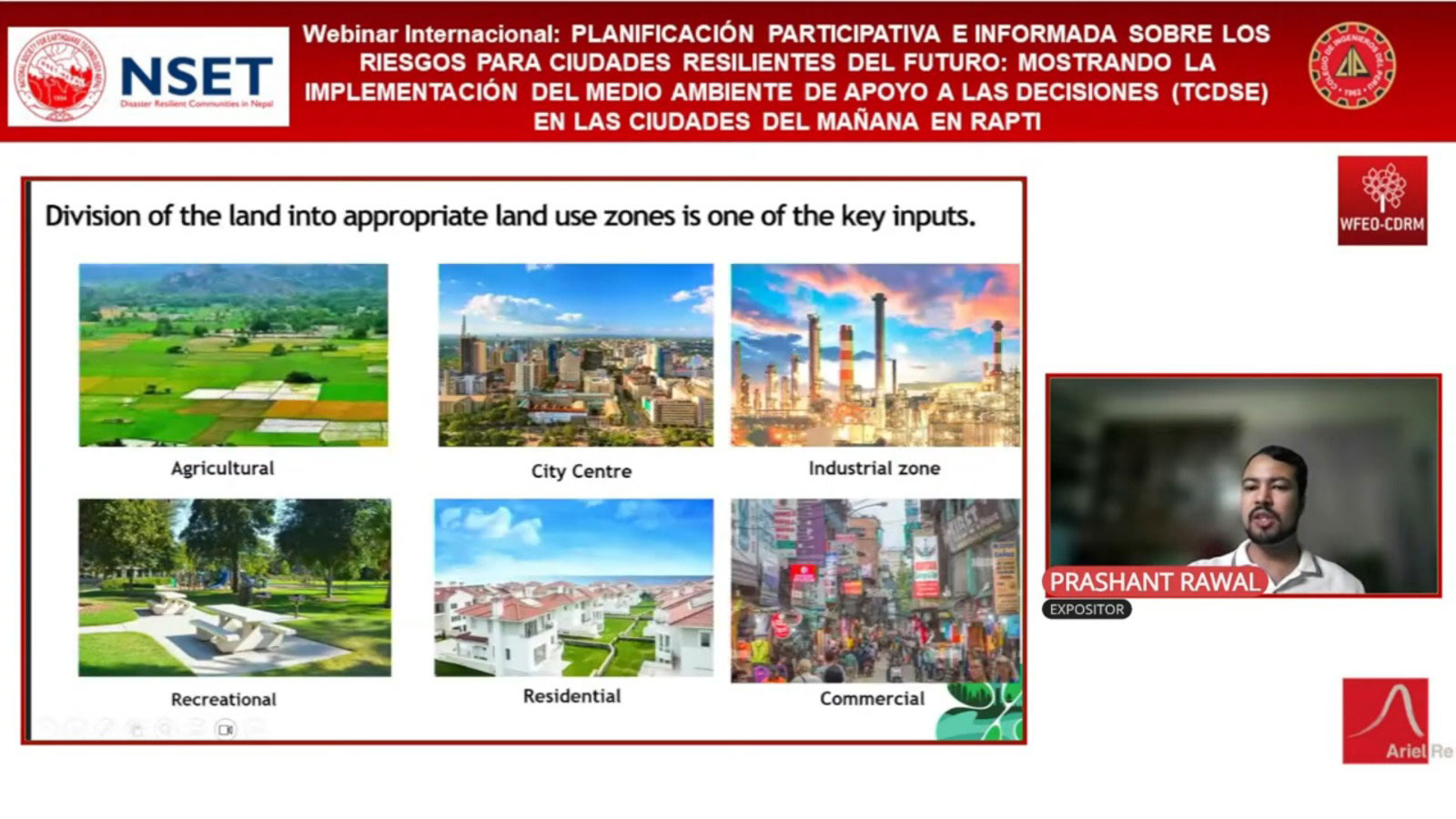 La presentación se centrará en el marco de planificación urbana participativa y basada en los riesgos diseñado para crear ciudades resilientes del mañana, el Entorno de Apoyo a la Decisión de las Ciudades del Mañana (TCDSE). Al exhibir la implementación del TCDSE en Rapti, la ciudad capital de la provincia de Lumbini, Nepal, demostrará cómo la integración de evaluaciones de riesgos de amenazas múltiples, proyecciones de cambio climático y participación comunitaria puede conducir a un desarrollo urbano adaptativo y sostenible.